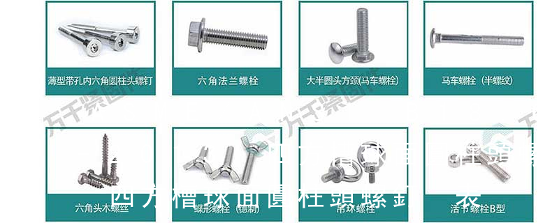 1)開槽普通螺釘多用于較小零件的連接。它有盤頭螺釘、圓柱頭螺釘、半沉頭螺釘和沉頭螺釘。盤頭螺釘和圓柱頭螺釘的釘頭強度較高,瑁在普通的部件連接上;半沉頭螺釘的頭部呈弧形,安裝后它的頂端略外露,且美觀光滑,一般