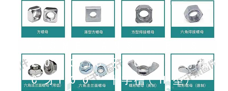 平杯)、半圓頭內六角螺釘(圓杯)、十字槽盤頭機螺釘、十字槽沉頭機螺釘、十字槽大扁頭機螺釘、十字槽盤頭自攻釘、十字槽沉頭自攻釘、十字槽大扁頭自攻釘、全牙絲桿(牙條)、六角螺母、法蘭螺母、尼龍螺母、蓋型螺母、蝶型