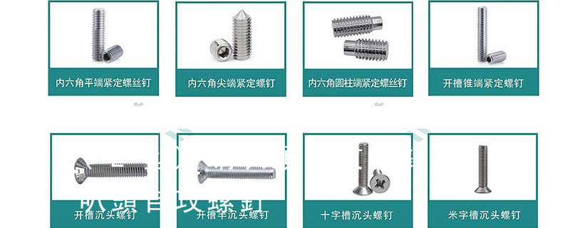 外扳擰:六角,六角法蘭面,六角凸緣,六角花形等;內(nèi)扳擰:一字槽,十字槽H型,十字槽Z型,十字槽F型,四方槽,復(fù)合槽,內(nèi)花鍵,內(nèi)六角花形,內(nèi)三角,內(nèi)六角,內(nèi)12角,離合器槽,六葉槽,高扭矩十字槽等。螺紋類型