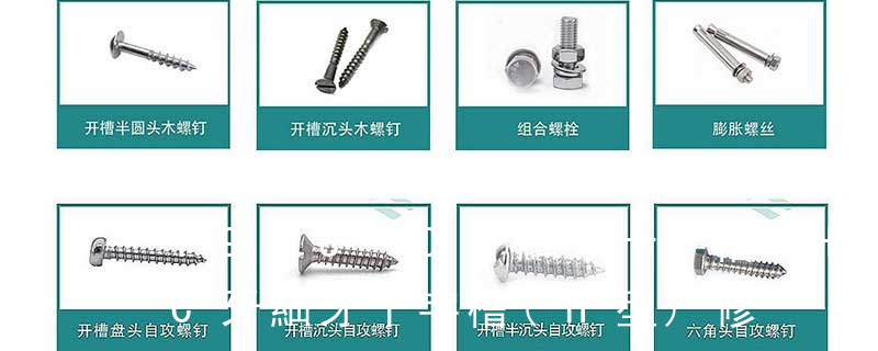 常用規格(公制螺絲、美規螺絲、英制螺絲):公制機械螺絲: Metric Ex:M3 x 6 – P P B : M3機械螺絲,6mm 長,十字,圓扁頭,鍍黑。Finish Code:外觀處理規格 Head Code:頭部外型。螺絲頭部外形。圓柱頭。半沉頭 1)開槽普通螺釘多用于較小零件的連接。它有盤頭螺釘、圓柱頭螺釘、半沉頭螺釘和沉頭螺釘。盤頭螺釘和圓柱頭螺釘的釘頭強度較高,瑁在普通的部件連接上;半沉頭螺釘的頭部呈弧形,安裝后它的頂端略外露,且美觀光滑,一般用