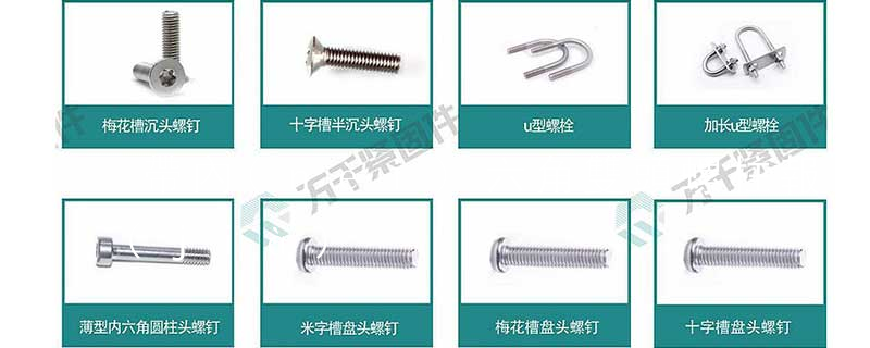 2、螺栓: 方頭螺栓, 鋼絲螺套, 六角螺栓, 馬車螺栓, 活節(jié)螺栓, 雙頭螺栓, 單頭螺栓, 地腳螺栓, 內(nèi)六角螺栓, 鐵塔螺栓, U型螺栓, 法蘭面螺栓, 鋼結(jié)構(gòu)螺栓, 高強(qiáng)度螺栓, 圓頭螺栓, 球頭螺栓, 扁頭螺栓, 不銹鋼螺栓,